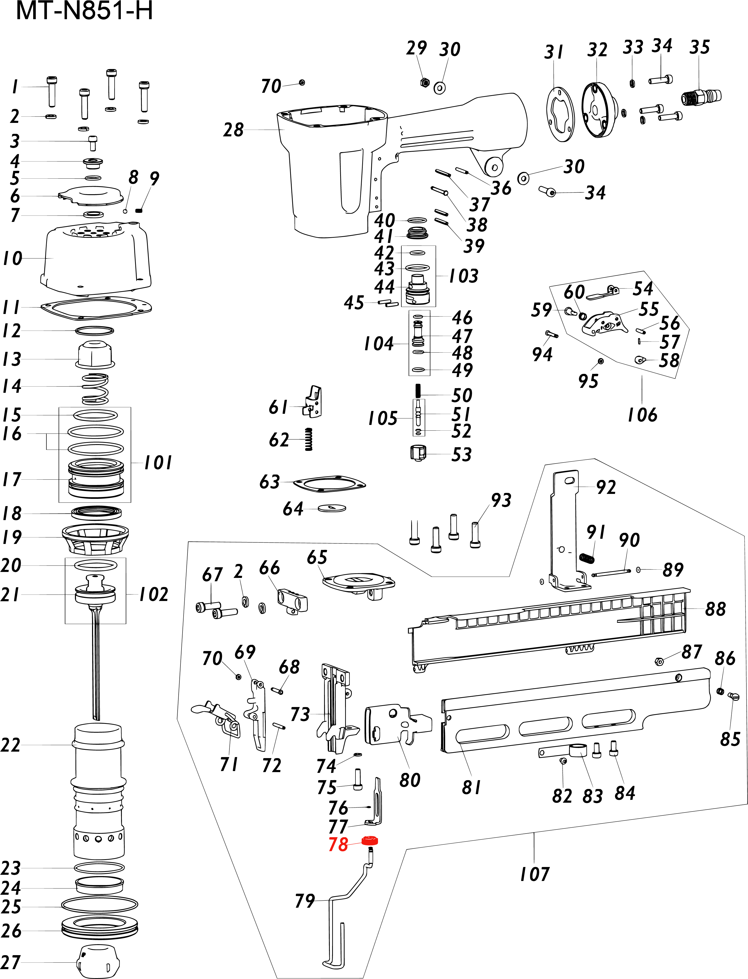 AN03A-026A Гайка регулирующая глубину забивания MT851H#78