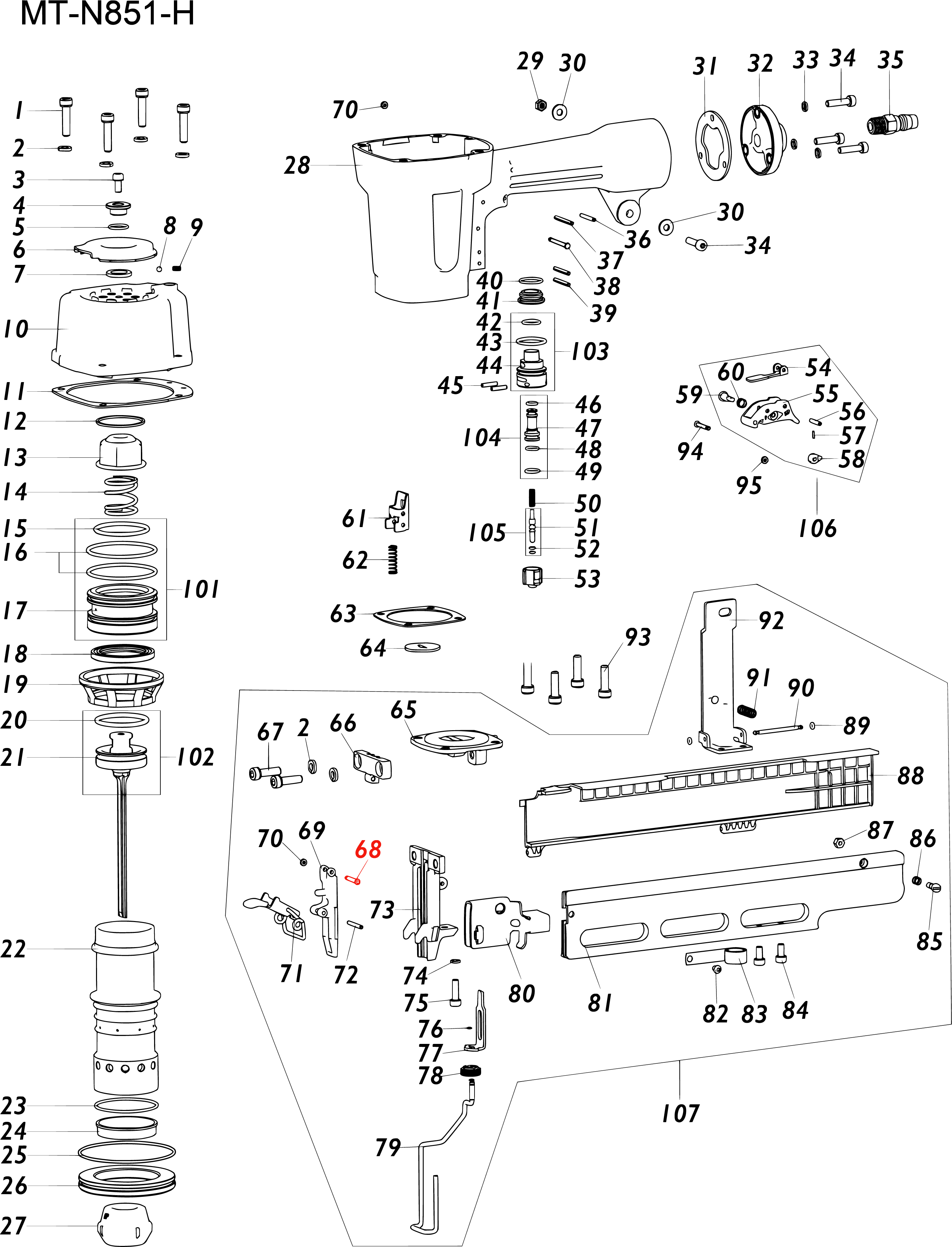 AN03A-043A Штифт фиксатор крышки носика MT851H#68