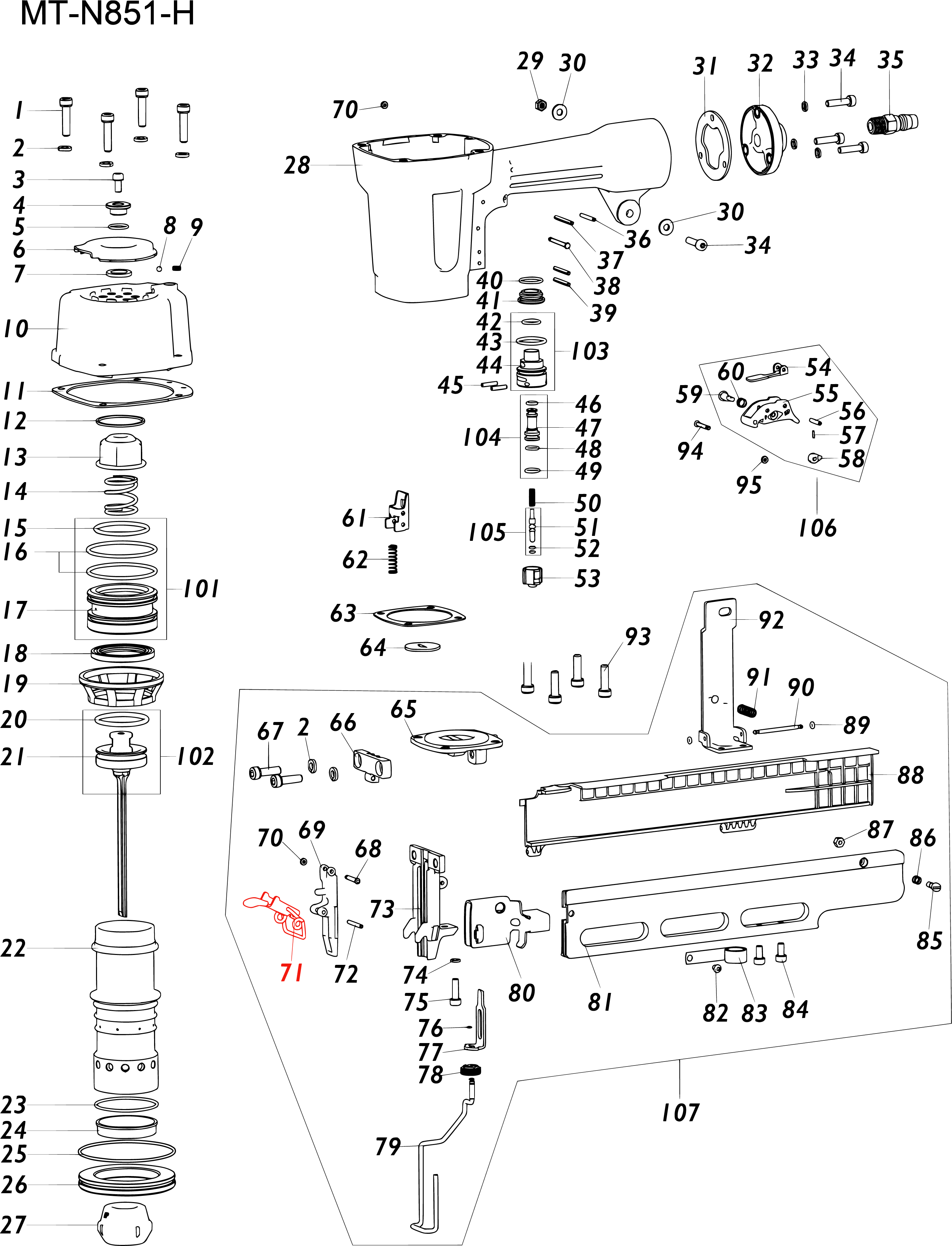 AN03A-Y15A1 Защелка с фиксатором для передней планки носика MT851H#71