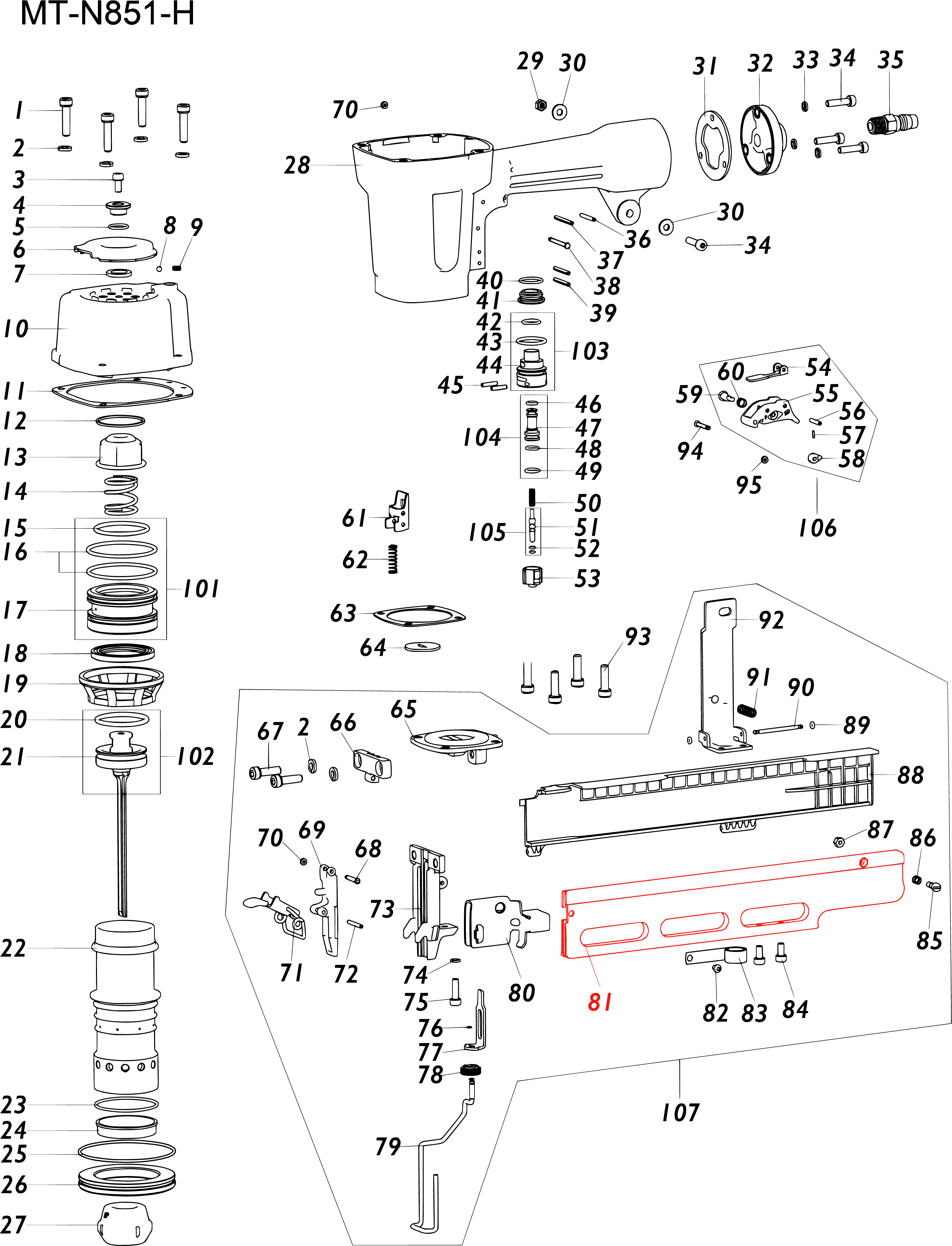 AN03A-Y16A1 Магазин (направляющая-податчик скобы) MT851H#81